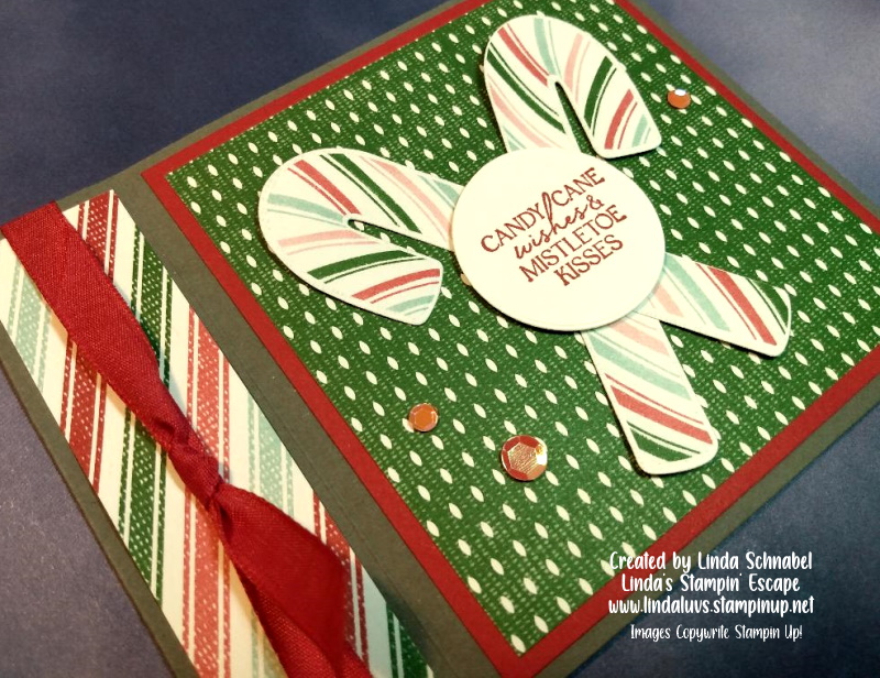 So cute and easy … right! One piece of cardstock, two score lines and some adhesive and you can create the Book Binder Fun Fold. This bundle makes it easy to stamp and die cut your way to “sweet” Christmas cards and treats!