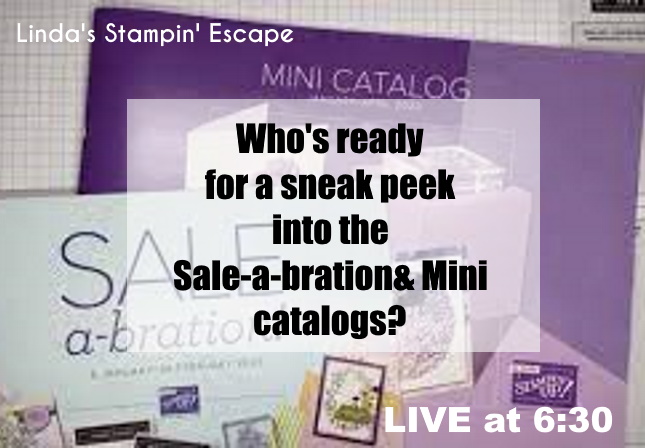 I’m inviting you to join me tonight on my Linda’s Stampin’ Escape Facebook page for a PEEK into the NEW Sale-a-bration and Mini Catalogs. There will only be ONE Sale-a-bration event this year … 2023. I know we’ve had two in past years but Stampin’ Up! decided to introduce everything all at once! Fun!