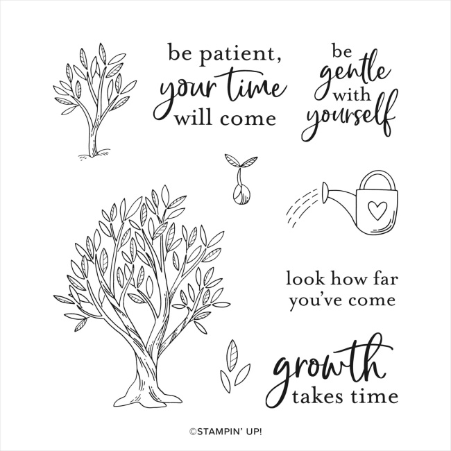Today I’ll be sharing another one of our NEW On-Line Exclusive Stamp Sets. Let me introduce you to the “Growth Takes Time”.