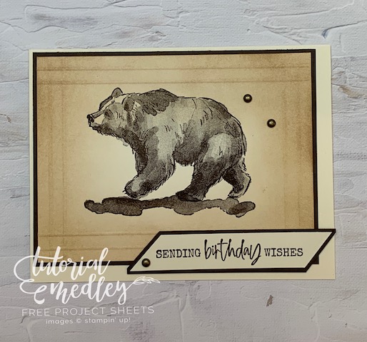 - On the Very Vanilla cardstock #2 stamp your Bear with Ground images using Early Espresso ink.