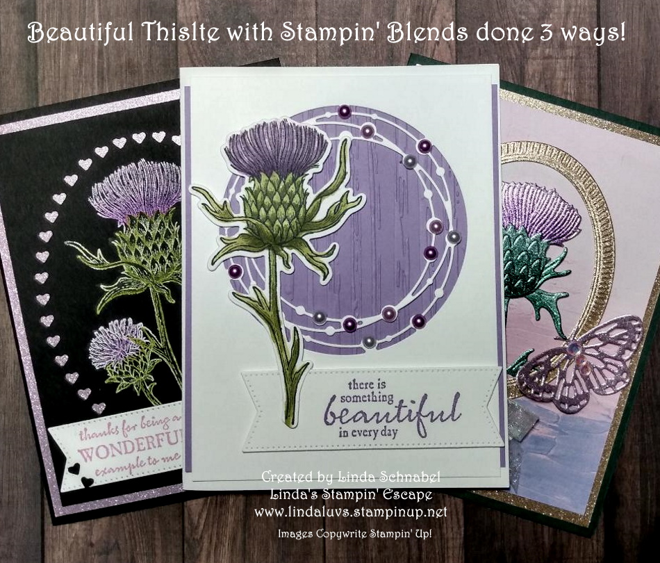 Today I’m sharing a video “replay” of last nights Facebook LIVE where I shared tips on coloring the Beautiful Thistle bundle with Stampin’ Blends. Then see how I took these tips and colored on 2 more stamping mediums – Heat embossed and the Fine Shimmer paper.