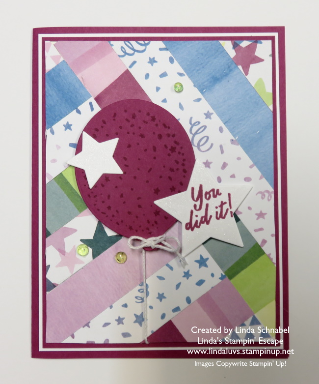 Yesterday I shared a fun background layout using our designer papers, today I am using the Bright & Beautiful designer series paper. If that doesn’t say party … not sure what does! This would make a fun Graduation card…. tis’ the season.