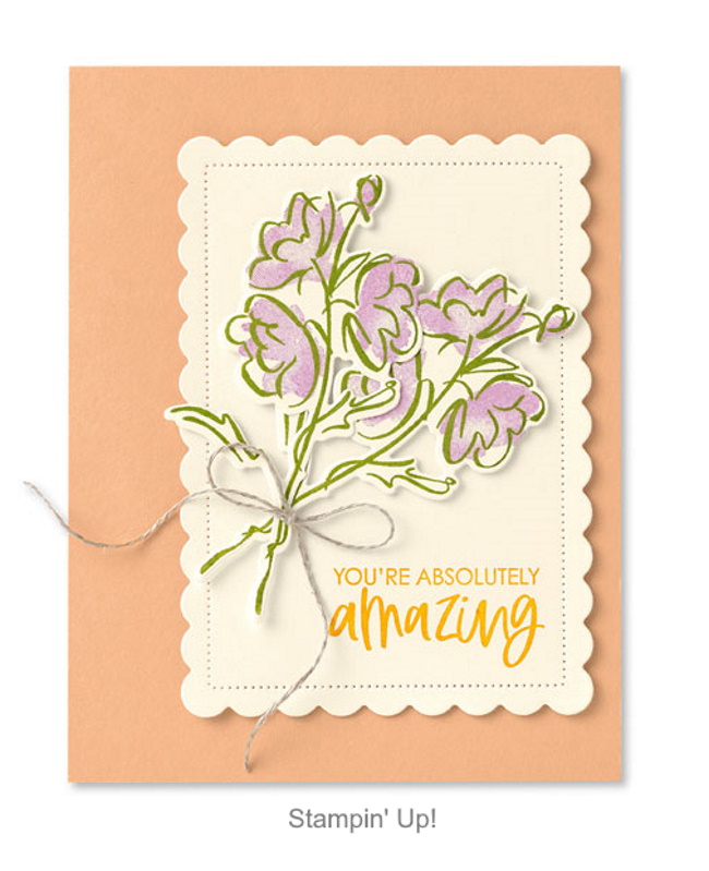 Today I have a card to share that comes direct from our Stampin’ Up! offices. The featured bundle is Color & Contour and the card highlights some fun Colors; Pale Papaya and Fresh Freesia.