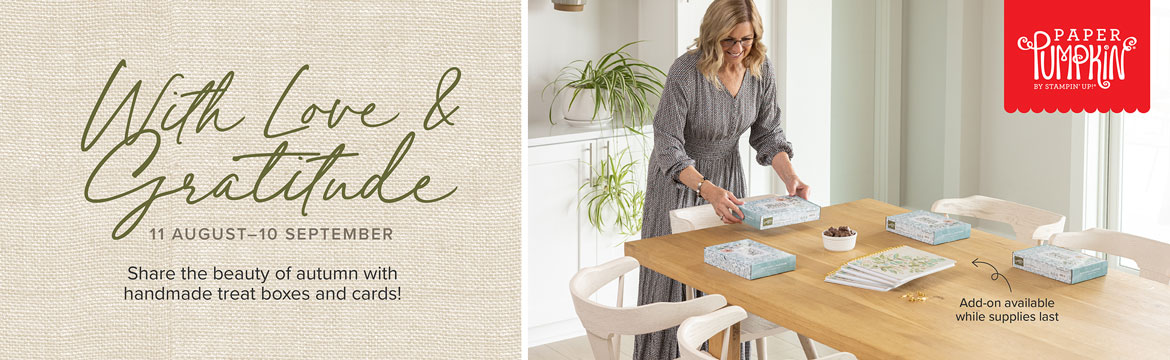 You can express your love and gratitude in elegant style with the September Paper Pumpkin Kit inspired by Shelli! This kit includes eight treat packages (you can also use for small gifts) and eight miniature note cards with matching envelopes and specialty gold foil embellishments. Whether you’re needing a hostess gift, a sweet surprise for dinner guests, or have another reason to give love and thanks, this kit has you covered.