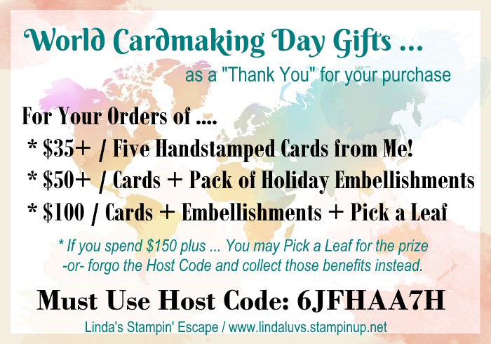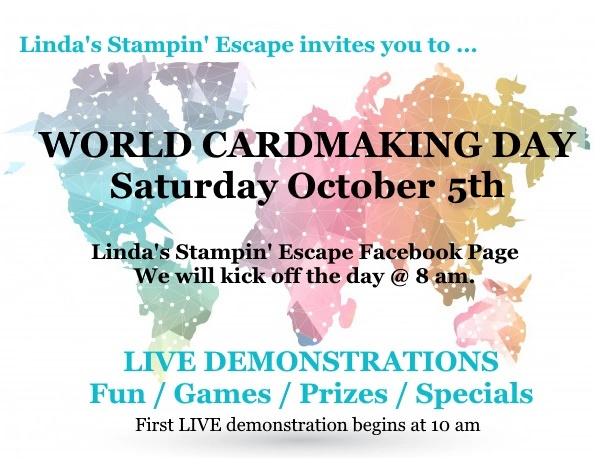 See you tomorrow on my Linda’s Stampin’ Escape Facebook page for an unforgettable day of stamping joy. We’d love to have you join us for this fabulous event! Let’s make World Cardmaking Day one to remember.