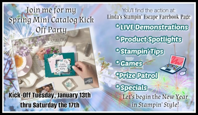 Don’t forget my Spring Mini Catalog party is going on now, on my Facebook page! CLICK HERE