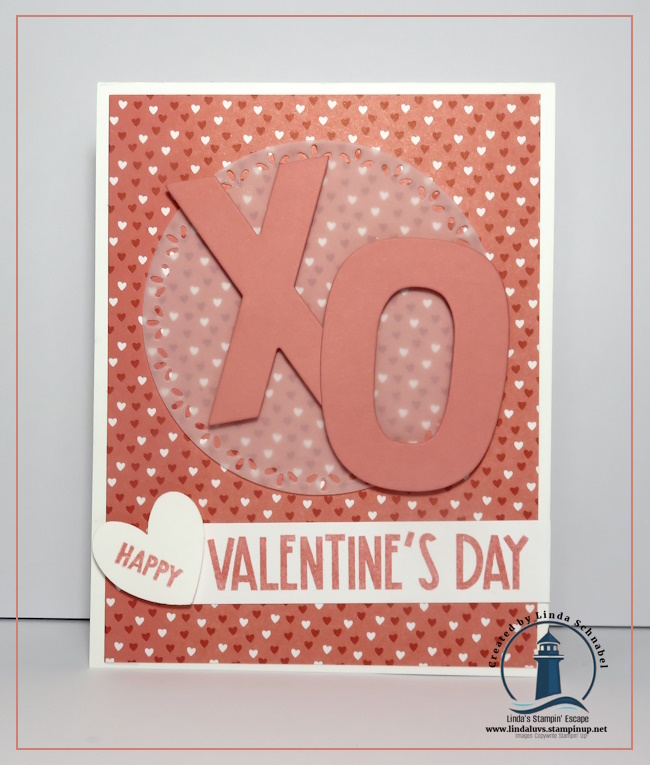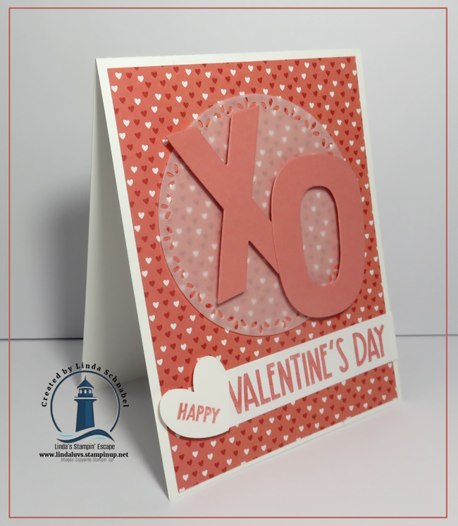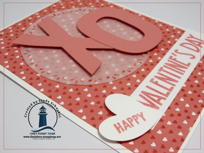 Next came the stars of the show: the X and O, die cut from Flirty Flamingo cardstock using the Party Alphabet Dies. Simple, bold, and full of meaning—who doesn’t love sending hugs and kisses? I popped them up with Stampin’ Dimensionals to add depth and draw the eye right to the center of the card. This is a great example of how these alphabet dies can be used beyond words and names to create symbols, sentiments, and playful focal points for any occasion.