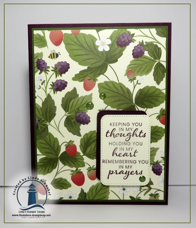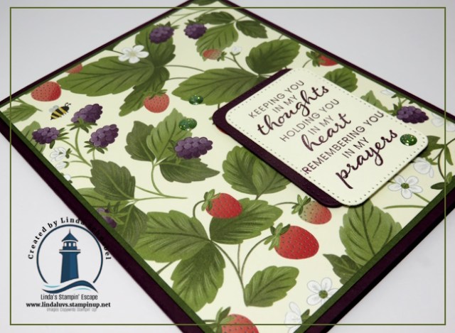 At first glance, the Cute as a Bug Designer Series Paper and the Prayers and Promises Stamp Set may not seem like a natural match. Cute as a Bug is filled with charming ladybugs, fluttering friends, and picnic-perfect prints that immediately feel playful and lighthearted. But this particular berry pattern stopped me in my tracks. It reminded me of my grandma—warm, comforting, and familiar—and that personal connection made it the perfect choice for a card meant to offer encouragement and care. This paper beautifully demonstrates just how versatile designer paper can be when you let emotion, memory, and purpose guide your choices.