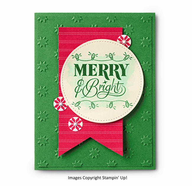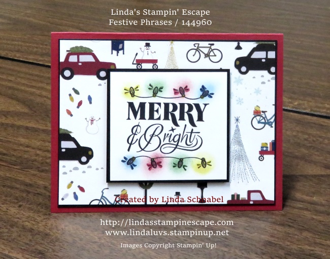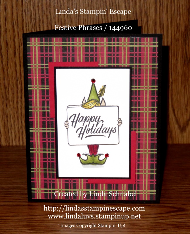 Today I have a quick -n- easy card made with one of the cutest stamp sets in the Holiday Catalog!! It’s the Festive Phrases stamp set found on page 45.
