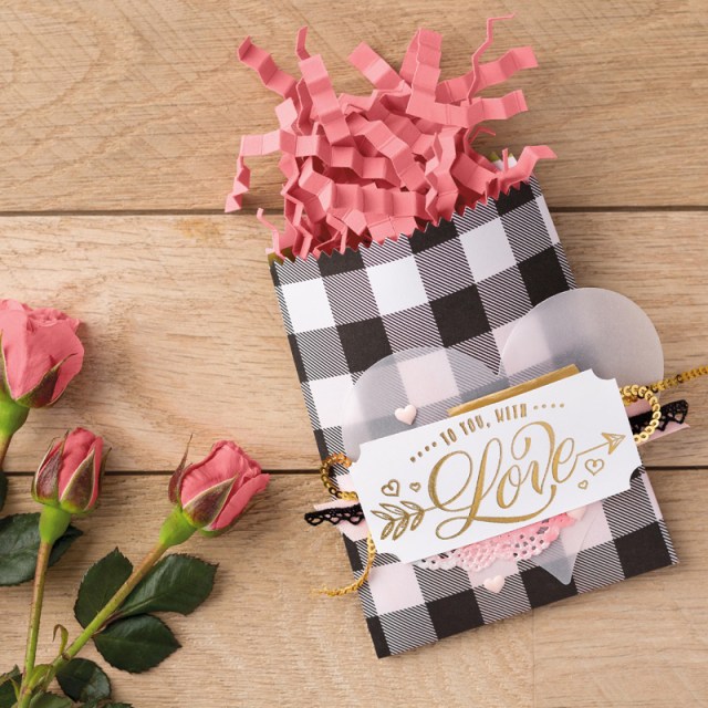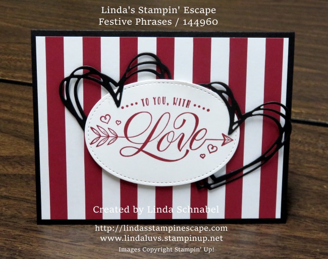 Here is a Valentine project created using the Festive Phrases stamp set, and it can be found in the Holiday catalog along side of the stamp set!