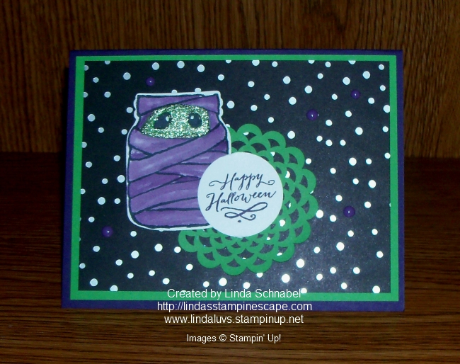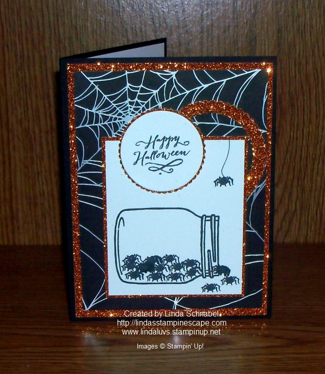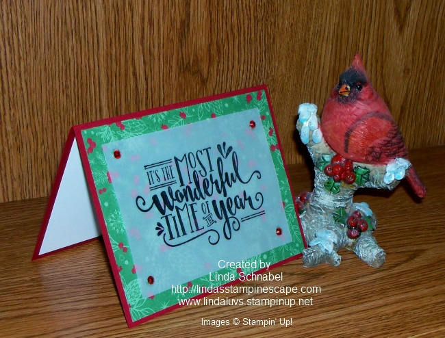 Marge started her card with the “This Christmas” Designer paper that can be found in the Annual Catalog (our big one) not the Holiday catty. Marge also used the thinlits to create her card, and then she added a little sponging to really make it pop! Don’t you love how she used the snowflake cut out from the stocking on her card … no wasted space here.