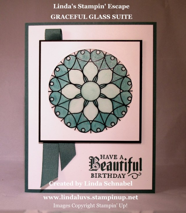 The color pallet for todays card is Pool Party and Bermuda Bay with a touch of white to pull your eye to the focal point … the cross. Peggy layered the cross which creates it beauty and texture.
