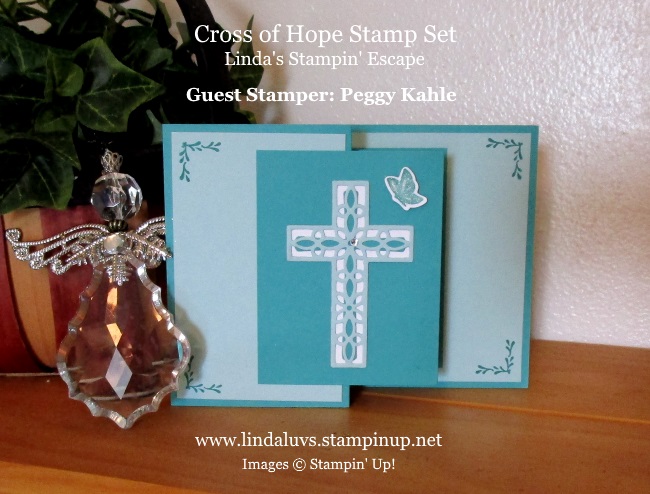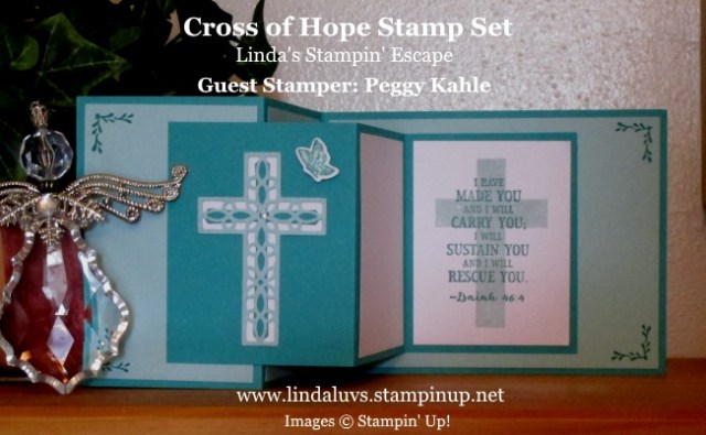 I hope you enjoyed Peggy’s card, it is so pretty and so fitting for this time of year. The Hold onto Hope stamp set and coordinating Cross of Hope Framelits dies are a nice addition to your stamp collection. I purchased mine to go with the Ribbon of Courage stamp set.