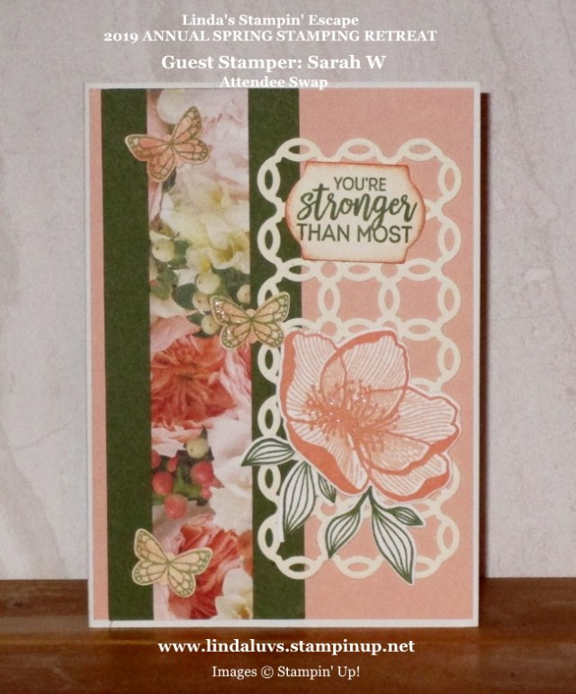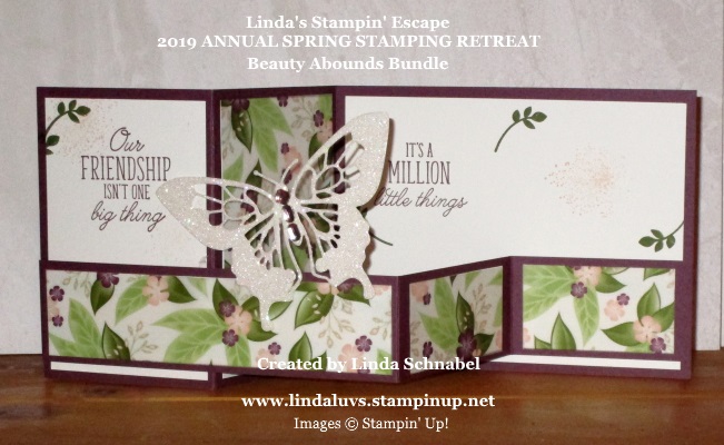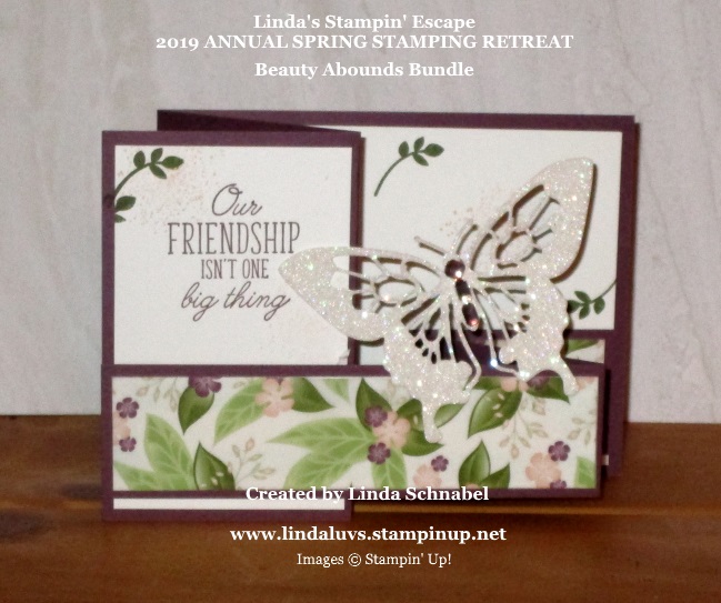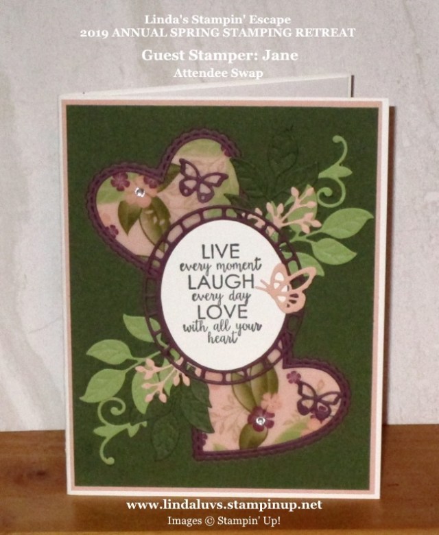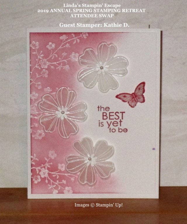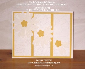 With Easter just around the corner I thought I would share a beautiful card that was created by my friend and fellow demonstrator, Peggy. This was a swap card from our last Spring Stamping Retreat and I do believe it was the winner! Our guests swap and then vote on which of the cards they like best. My heart is saddened that we had to cancel this Spring Stamping Retreat due to the Corona Virus.