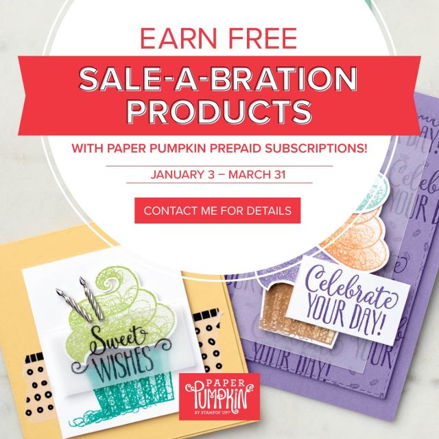 Don’t forget that you can earn FREE Sale-a-bration items when you purchase the Paper Pumpkin subscriptions.