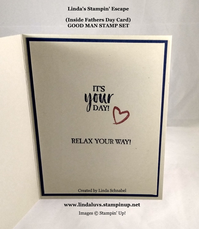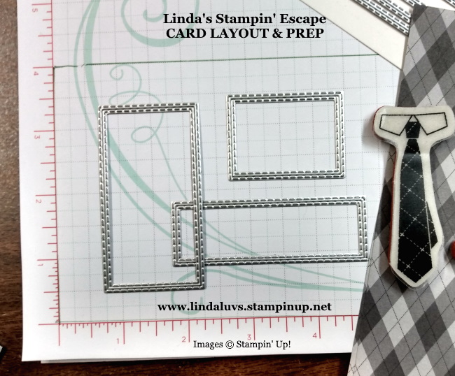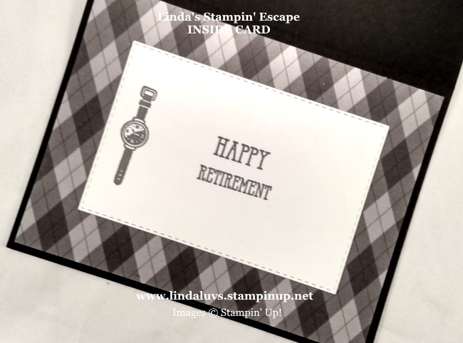 Back to my card! The designer paper is from the Country Club suite of products and really highlights the Well Dressed stamp set. Nice classy look … Don’t you love the way the stitching in the die cuts coordinates with the design on the tie, which looks great with the designer paper!!