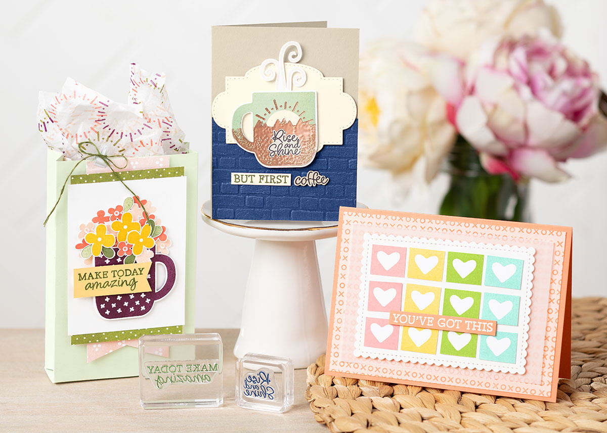 The sentiments were stamped in gray onto Whisper White and then die cut using the Stitched so Sweetly dies…