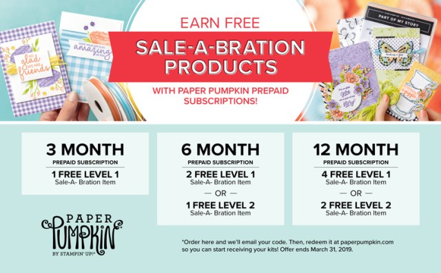 PLUS … I have a Private Paper Pumpkin page on Facebook that I am building with samples and videos for you to enjoy and see additional ways to use your kits. My “Pals Page” is reserved for “my” Paper Pumpkin subscribers. Come join us … subscribe by clicking HERE or purchase a subscription below.