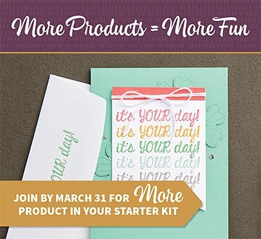 During Sale-a-bration … Stampin’ Up! has two amazing offers for a starter kit. Option 1: Choose $175.00 of product for only $99!! Option 2: Get $175 worth of product + the exclusive Craft & Carry Tote ($50 Value) for only $129.00