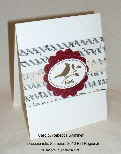 I used the stamp set “Joy to the World” which you can find on page 24 of the Holiday Catalog, I have used this set many times already and it’s just September! I’m gearing up for my holiday classes!