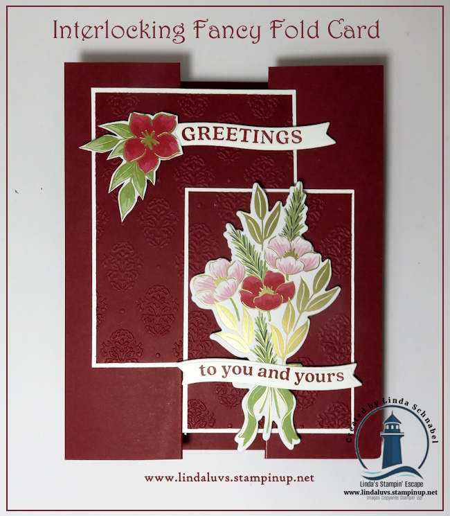 To make this special even better, I’m including a little gift from me! When you place a qualifying order of $75 or more during the Free Shipping promotion, you’ll receive my October Stamp Club PDF Tutorials — a creative bonus you won’t want to miss. This month’s projects feature the stunning Interlocking Fancy Fold, one of my absolute favorite fun folds because it’s elegant, eye-catching, and easier than it looks! You’ll receive two complete tutorials — one with rich autumn tones and cozy textures, and another that sparkles with Christmas cheer. Each PDF includes full-color photos, step-by-step instructions, and all the measurements you’ll need to create these gorgeous cards at home. Whether you’re looking to impress your friends with a fancy fold or just want to try something new, these tutorials will walk you through every detail with ease and inspiration. Here is an alternative card I created …