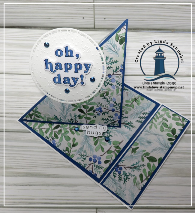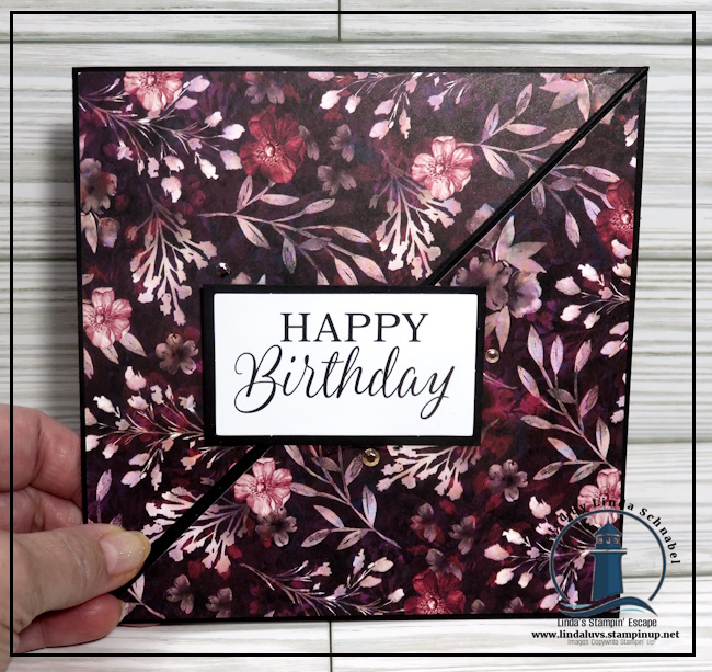If you enjoy the tutorials and love fun folds and the Meandering Meadow Designer Paper, join me on Tuesday night at 6:30 on my Linda’s Stampin’ Escape Facebook page. I will be going LIVE with a great Fun Fold done two different ways!