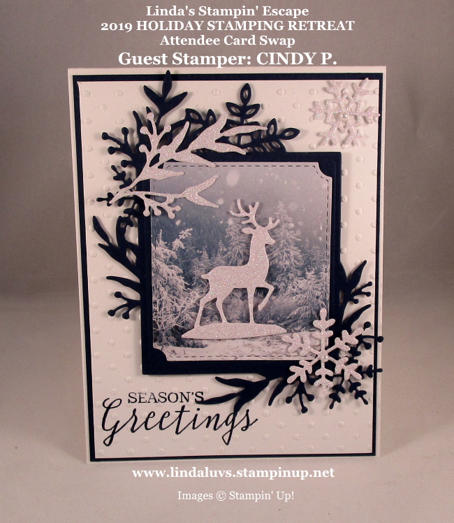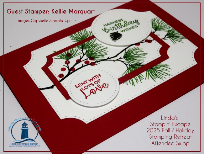 I’m so excited to share that the winning card from our Fall/Holiday Stamping Retreat Attendee Swap was created by the talented Kellie Marquart! Her beautiful card stole the show with its elegance, detail, and creativity — all featuring the Branching Out Bundle.