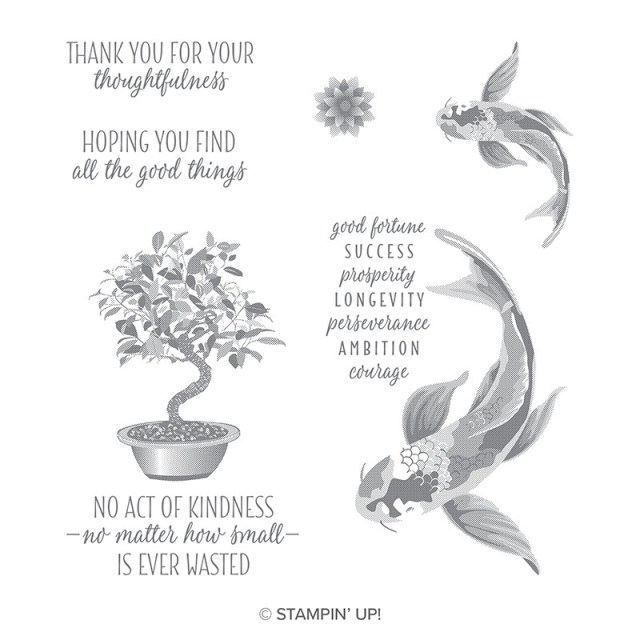 Another beautiful Distinktive Stamp Set is the “All The Good Things” stamp set with the lovely koi fish. Did you know that koi are symbols of love and friendship in Japan?