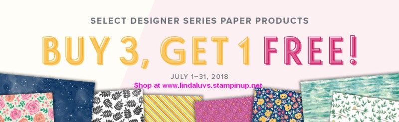 Admit it: you just love gorgeous Designer Series Paper (I’m no different)! By popular demand, Stampin’ Up! has brought back the incredible Designer Series Paper offer: You can buy three packages of select Designer Series Paper and get one FREE during July! This sale includes select Designer Series Paper from the annual catalog (see list below).