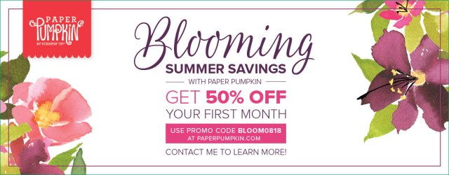 I am so excited today to share with you a special offer that I am starting today and will run through the end of this month!! I also have a cute “you are going to love this” alternative project from this months Paper Pumpkin kit!! Stampin’ Up! has 3 great promotions going on this month and to send July off with a BANG … I’m sweetening the pot!!