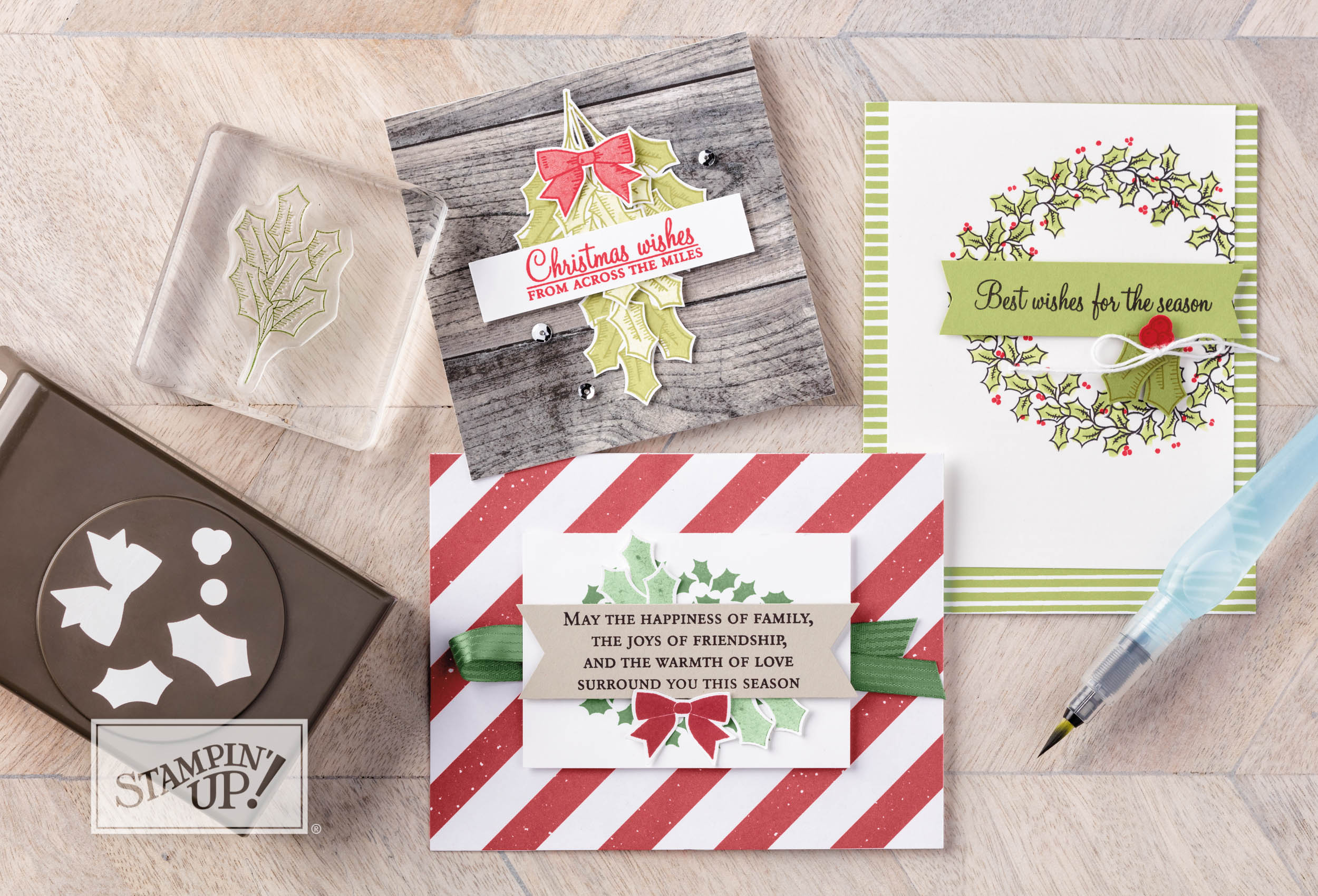The Shine Bright Bundle includes the Shine Bright Cling Stamp Set and the Jolly Season Dies. You can create custom die-cut Christmas trees, stars, and holly boughs in record time using the Stitched Brightly Dies.