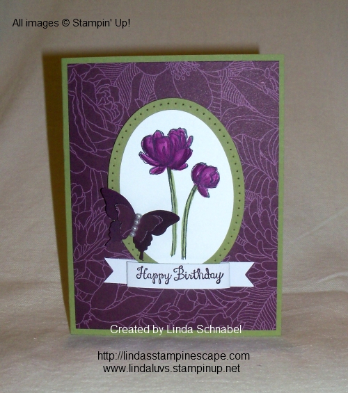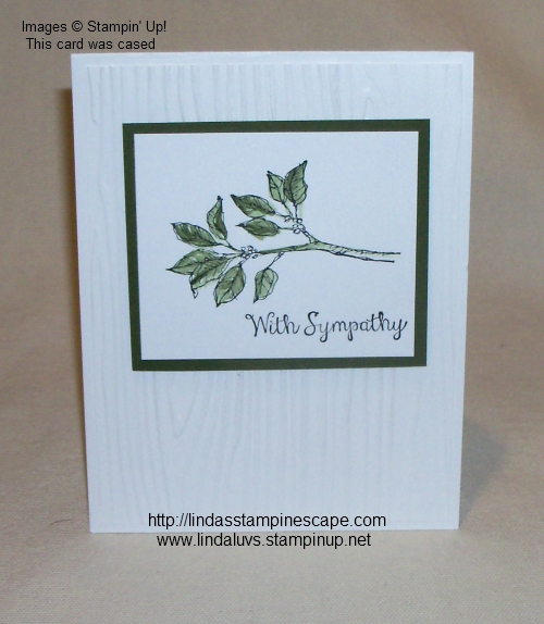 This card also has the “honeycomb” embossing folder and the Bitty Butterfly punch is used. The stamp set is no longer available but my suggestion would be the “Serene Silhouettes” or the “World of Dreams” stamp set… either one could be used in replacing the stamp set on this card.