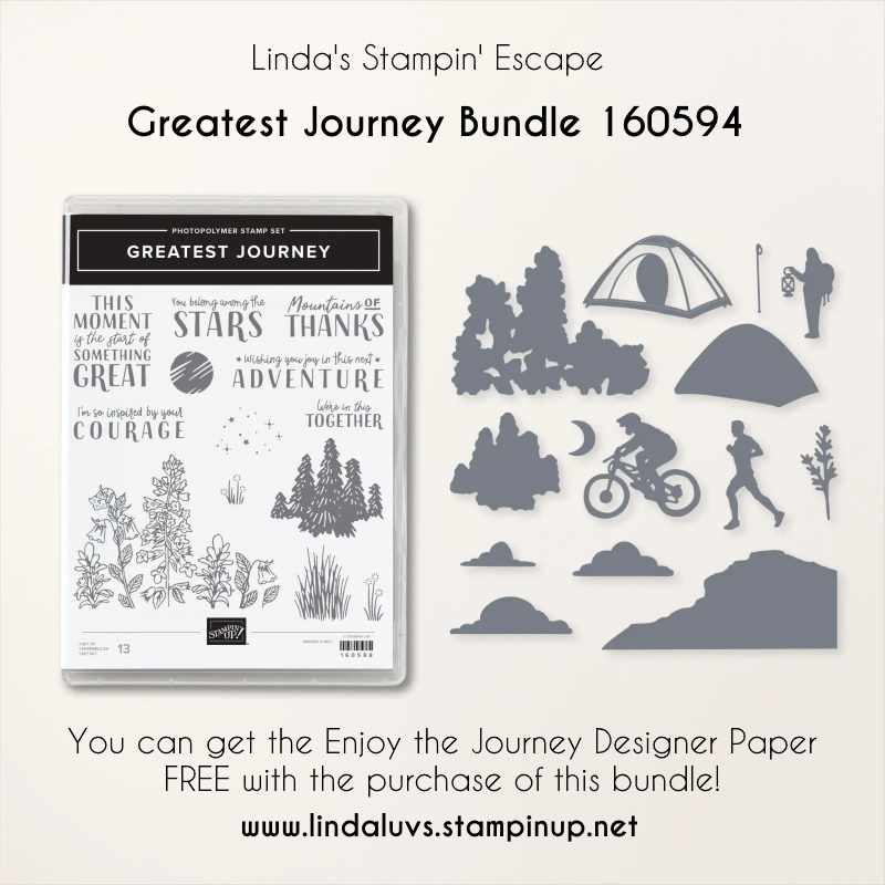 I hope today’s card inspired you. Just so you know, there’s also a tent and a hiker in that bundle, and I have something floating around my mind for one of the designs in that Enjoy your Journey designer paper. Can’t wait to share that one with you!
