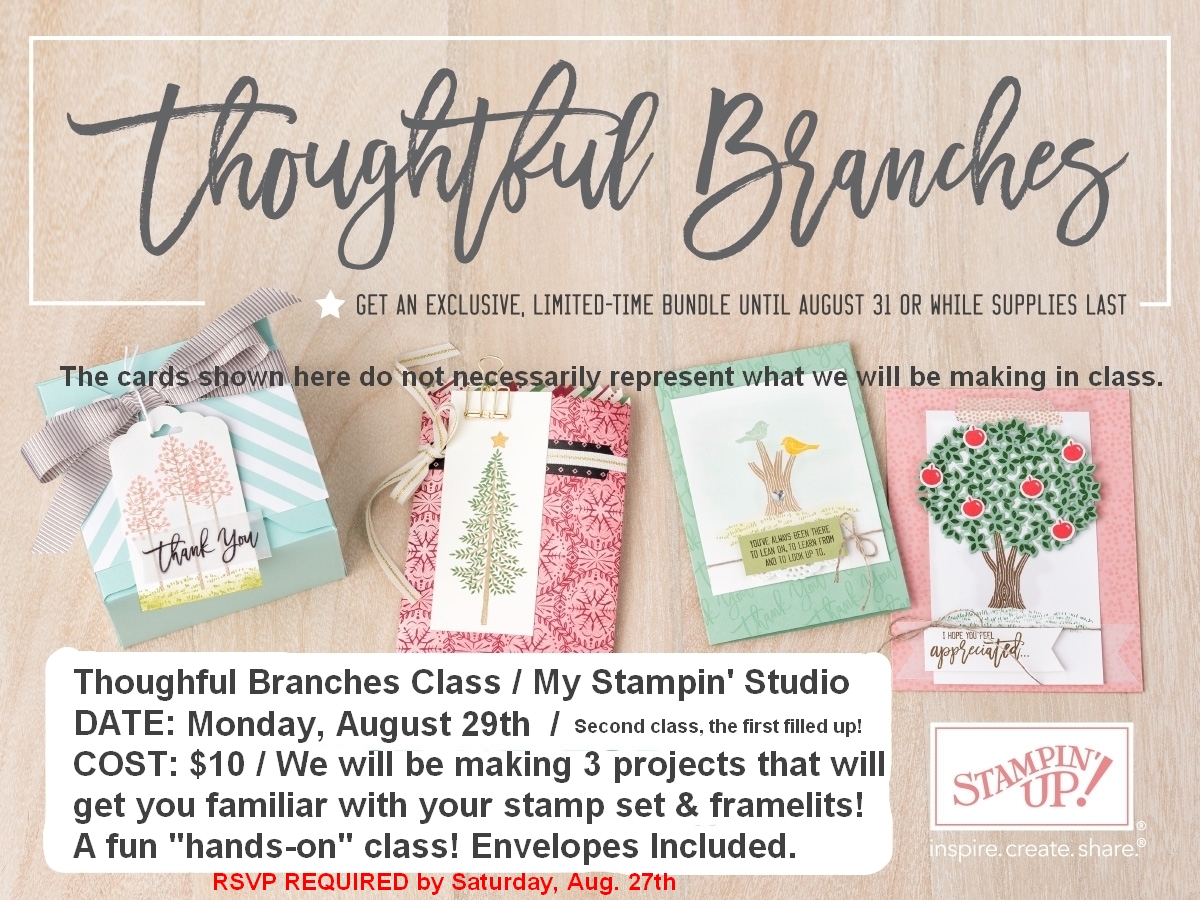 You’ll enjoy stamping in a relaxing environment and a tasty home made lunch for you. I will have a variety of beverages for you to enjoy.