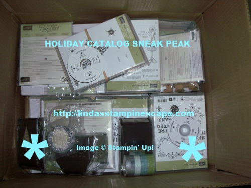 Speaking of Holidays … my Holiday Catalog goodies arrived yesterday! Told you it was exciting around here! An entire box just filled with Holiday Fun. If you are one of my preferred customers or club members – your Holiday Catalog is on it’s way. If you would like to know how you can get one, contact me at lindaluvs2stamp@aol.com.