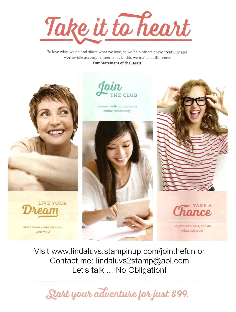 If you would like to get together and discuss the opportunities … contact me atlindaluvs2stamp@aol.com