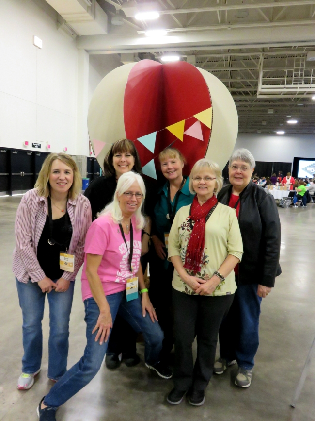 I’ll start with the bottom left and work my way across the group … First we have Connie (left), Becky (center), and Cheryl (right) … Second row is Debi (left) me (center) and Brenda (right). They look great! Me? I was a bit tired … I drank 3 cups of coffee at dinner the night before (silly me) I was up till 5 am. Only 1-1/2 hours of sleep but I wouldn’t have missed this gathering for the world!!