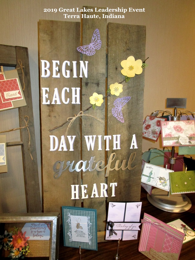 I’m back! I took a little break while I was down in Terra Haute, Indiana for a Stampin’ Up! event … our Great Lakes Leadership event. I went with my friend and fellow demonstrator Gloria Helmbrecht. There we met with other Stampin’ Up! leaders and our Great Lakes Region Manager … Shannon West. We were there to learn more about our business and how to help our downlines, and that is why I was there!