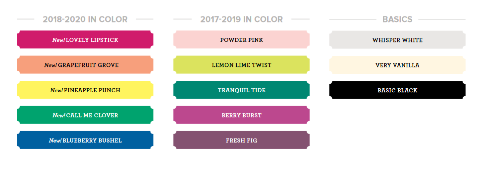 It’s been about 5 years since we had a color update and 8 years since Stampin’ Up! has done a revamp like we’re seeing now.Β I’m excited … the colors are current, fresh and really look good together!Β While I’m at it … Let’s look at the new 2018-19 In Colors and NEW Core Colors!