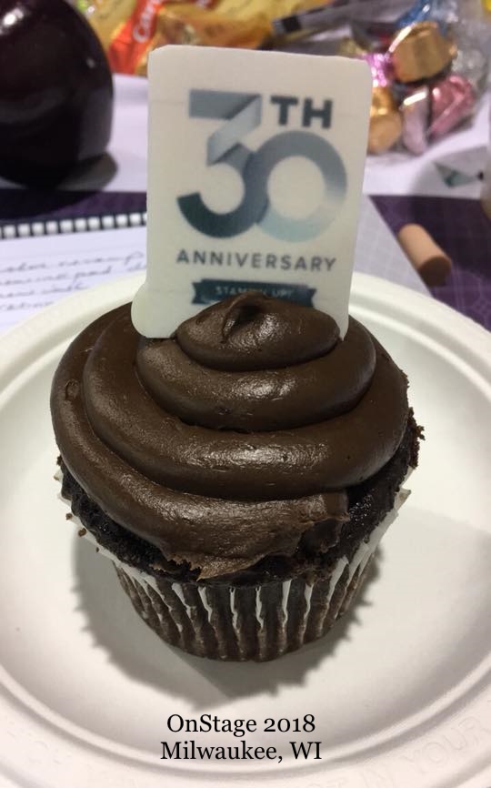 The day isn’t all work though … we get lunch, more stamping demonstrations, we get to stamp and use the new products too … Demonstrator Life is Good!Β And if that isn’t good enough, we get our cake – and eat it too … or should I say Cupcake!!