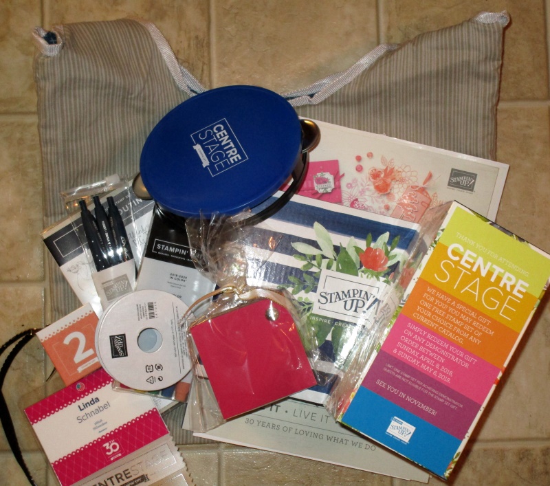 Speaking of gifts, Stampin’ Up! treats us royally while we attend our events.Β These are all the goodies I brought home with me from the 25th Celebration β¦