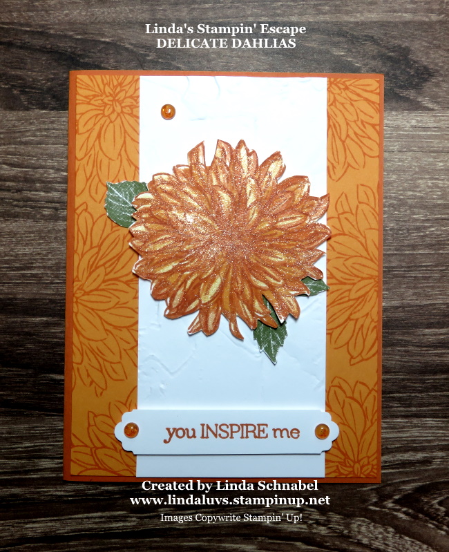 Today I have two cards, the video and the details for my Delicate Dahlias class. Does FREE * FREE equal a WIN * WIN?!! I would hope so 🙂 You can get the Delicate Dahlias stamp set for FREE during Sale-a-bration, and when you purchase enough to get yours … You will get a FREE class from me!