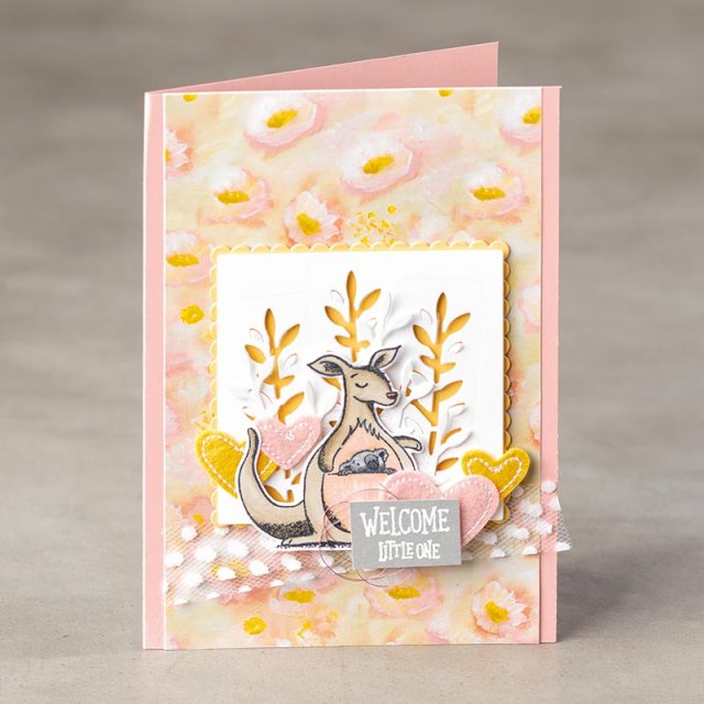 When creating cards using the spotlight technique, you will be stamping your image twice; one for your main image or background, and the second which will be cut or punched to create your spotlighted area.