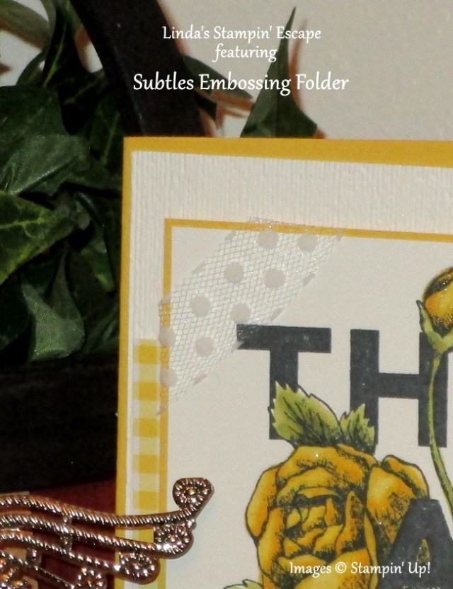 And there you have it — a quick, beautiful card all using the same color (Crumb Cake) stamped on itself, layered up with Early Espresso for contrast, and tied together with Very Vanilla and baker’s twine touches. Using the Autumn Toile Suite makes it even more fun, because everything matches so effortlessly: the stamps and dies, the designer papers, trims, and metallic papers in rich, earthy palettes.