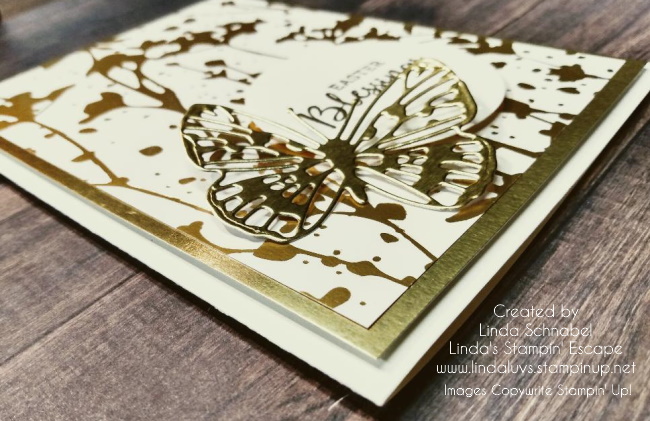 The spooky background with a full moon was transformed into a warm background and heartfelt feelings that can be sent to a friend to show you care. Instead of bats and ghosts, I stamped some pretty foliage from the Natures Prints stamp set.