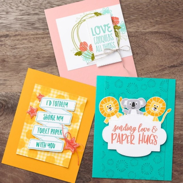 Love, love, love this stamp set and dies … and the greetings are awesome for all occasions! I don’t see many “Just a Note” anymore unless it has musical notes around it. Which is fine sometimes, but sometimes, I like to send “just a note” to a friend to let them know I’m thinking about them.