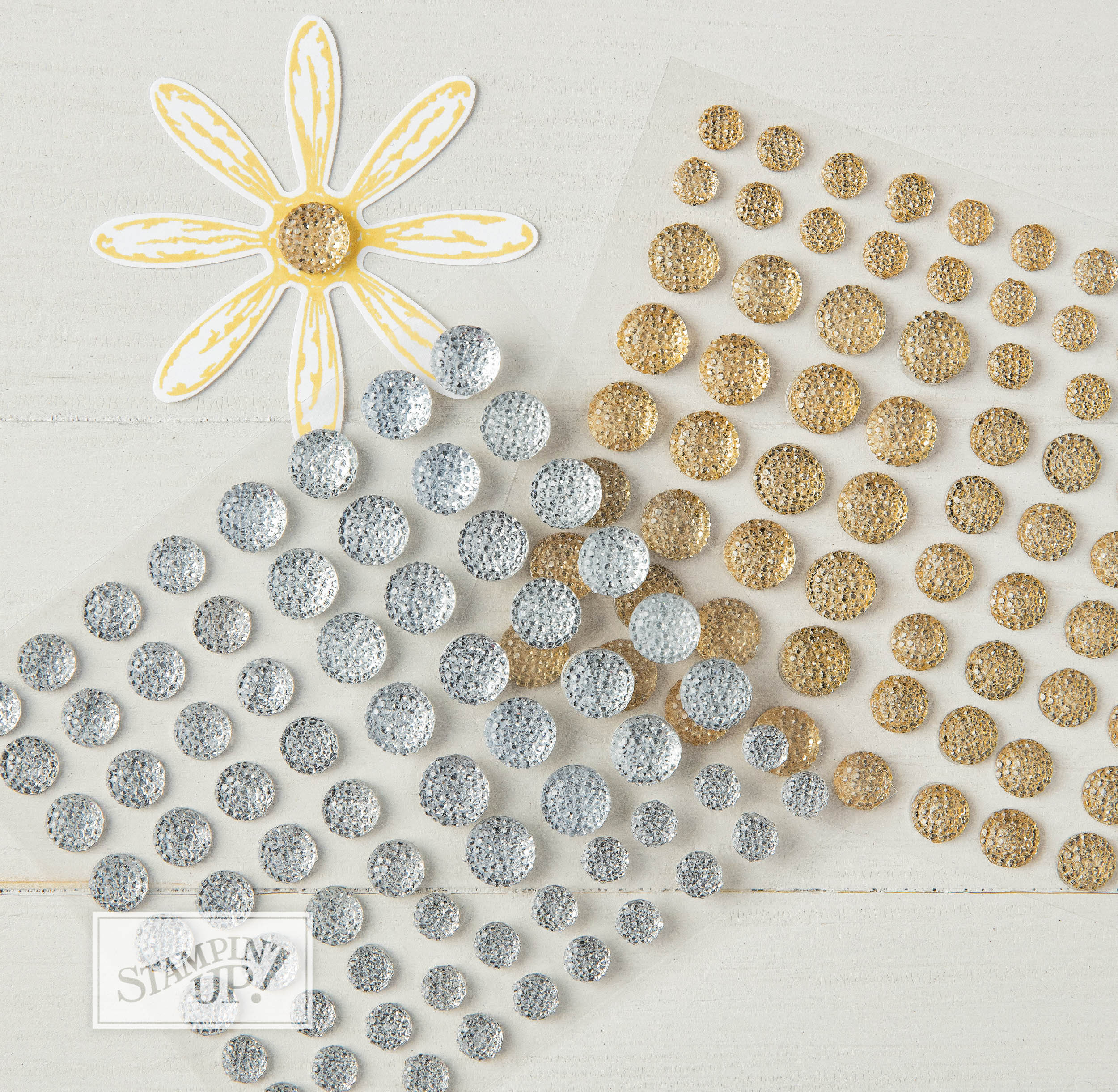 We tied the entire card together by placing the pretty little “Glitter Enamel Dots” around the card front. You can see it draws your eye from the base to the greeting and then to the leaves. Simply pretty.