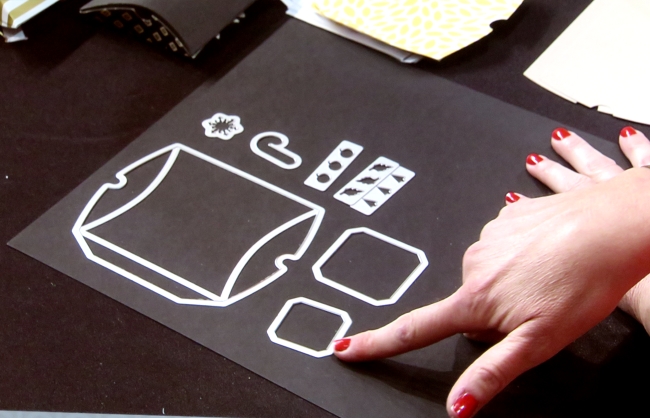 She introduced the new “Pillow Box” die to us … Oh, not just any pillow box, but a “square” one!! And it’s big enough to hold an entire York Peppermint Pattie! YUM 🙂 And look at the cute accessories included to make projects for any occasion, plus you can have a window!