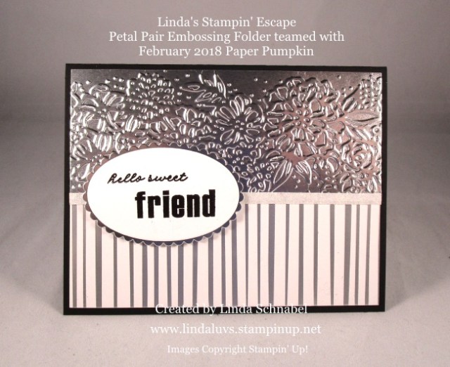 Today I will share a pretty card that I created using the Blooming Basket Bundle. The beautiful stamp set has a coordinating Embossing Folder (which will be available in the upcoming (2018-2019 Annual Catalog).