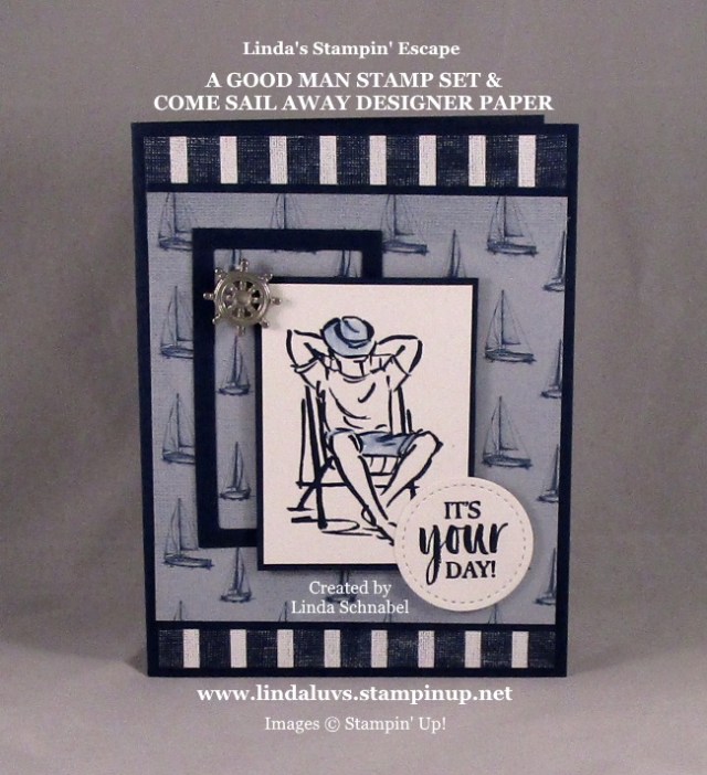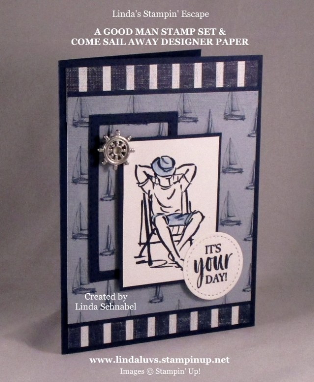 I am happy to be back with you today because I have an awesome card to share with you, and the stamp set is available today! It is the “Well Dressed” stamp set and I’ve paired it with the “A Good Man” stamp set from our annual catalog … perfect for Fathers Day ❤ or a birthday for Dad.